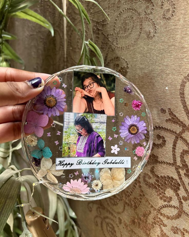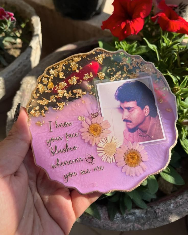 Handcrafted resin photo frame with premium floral detailing. A perfect keepsake for weddings, anniversaries and memories.