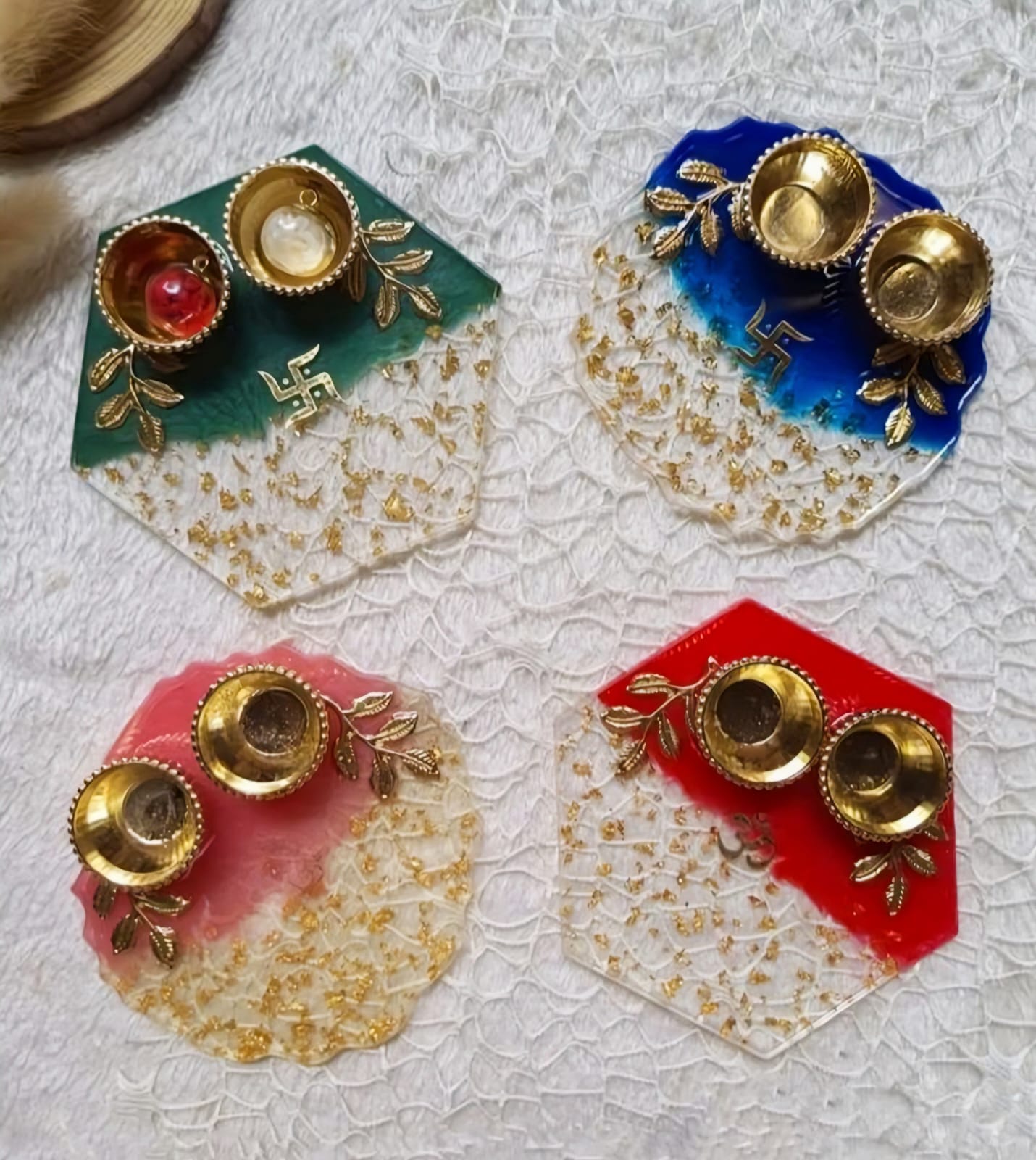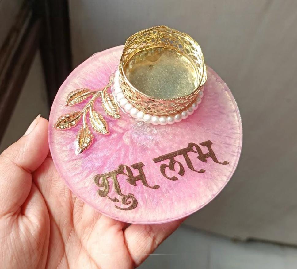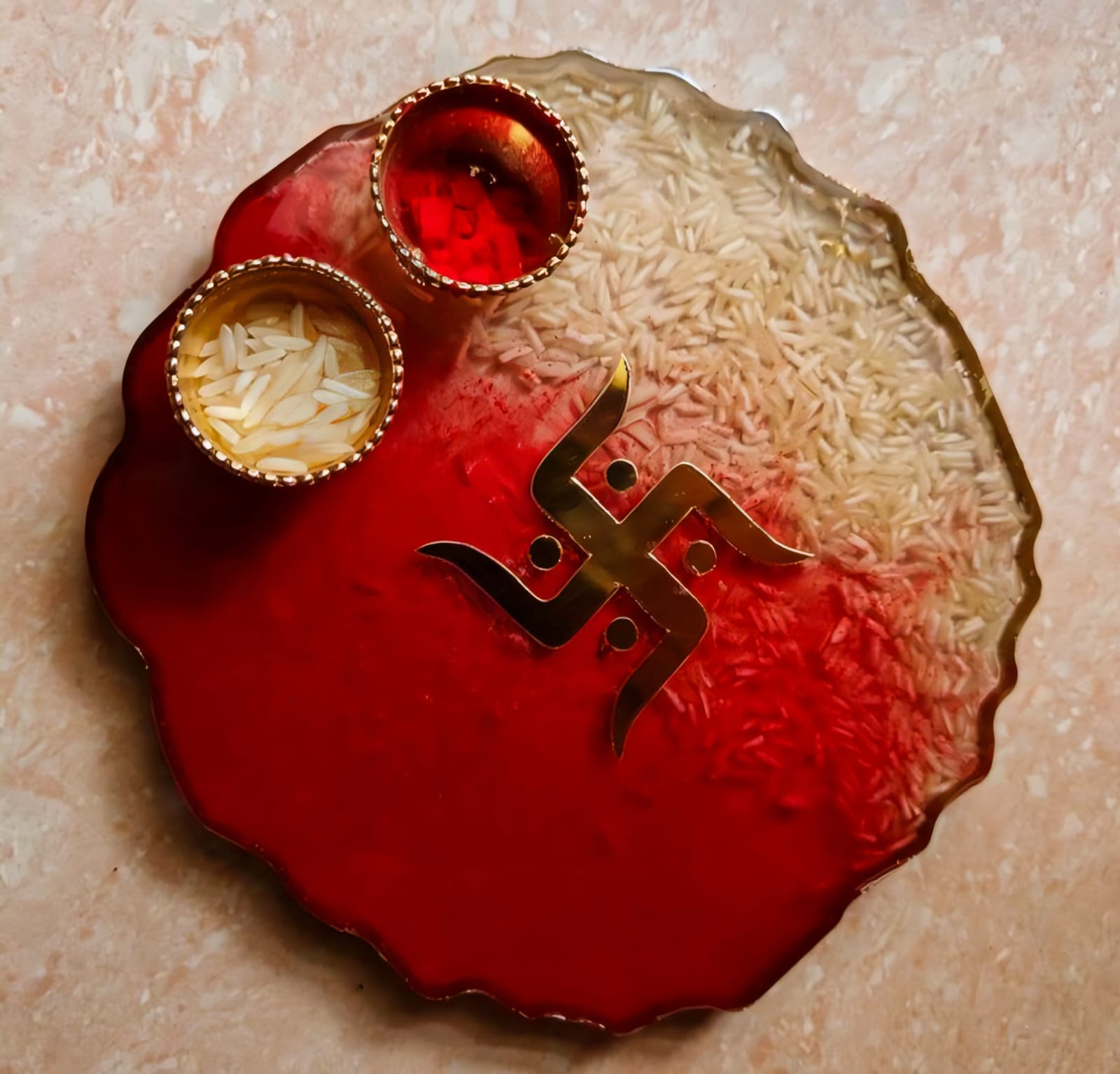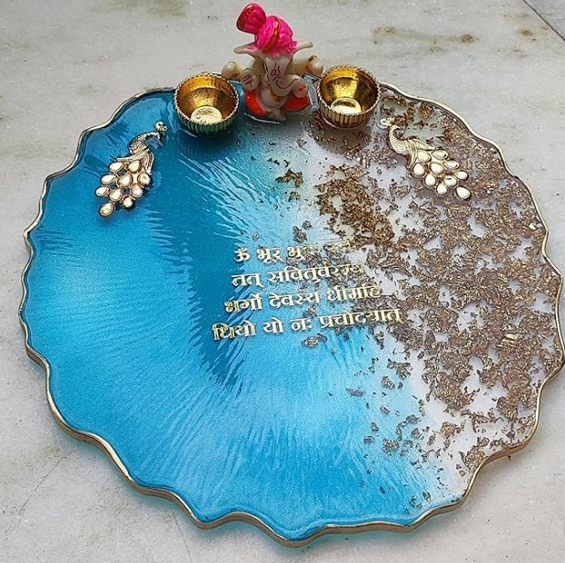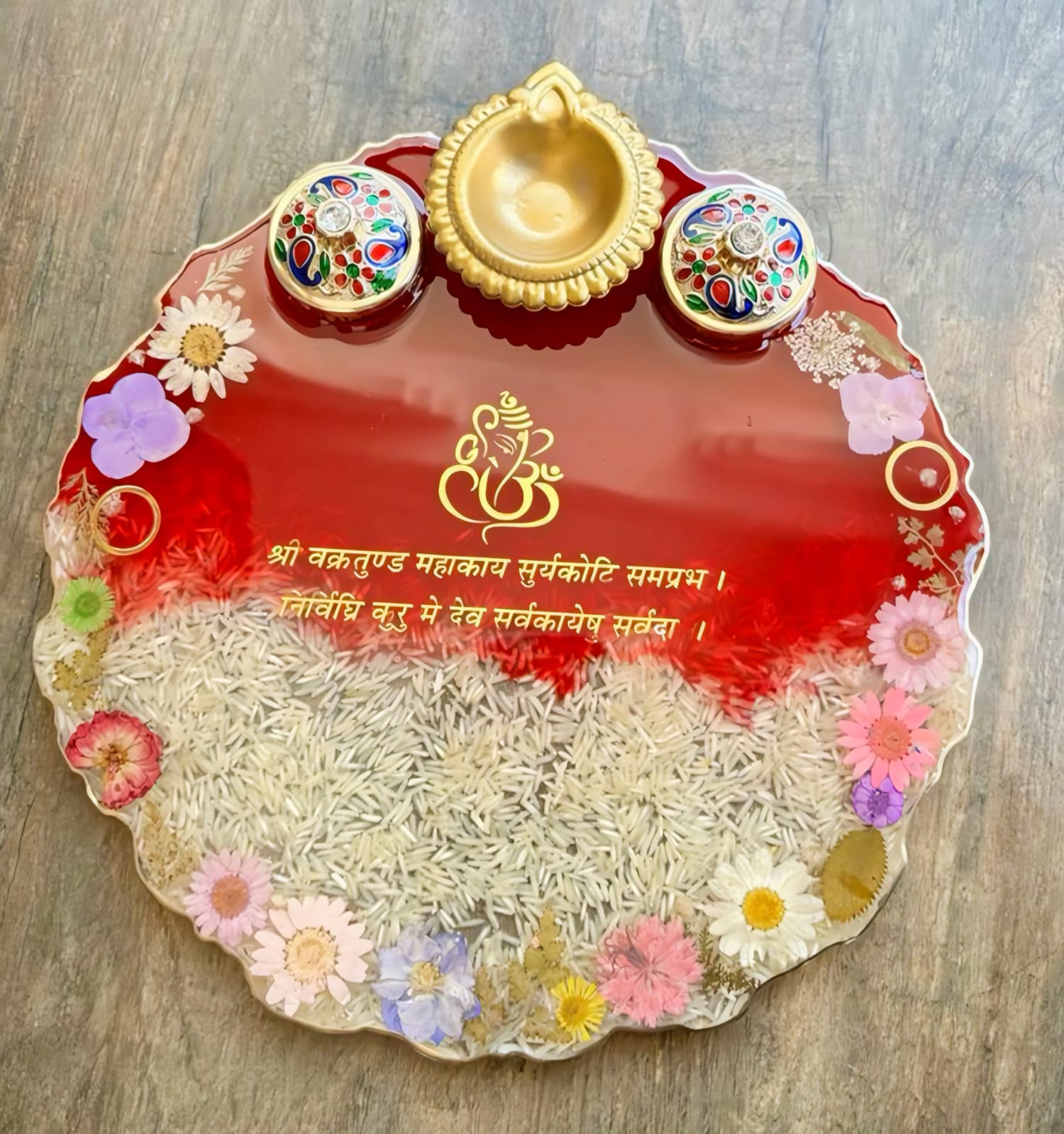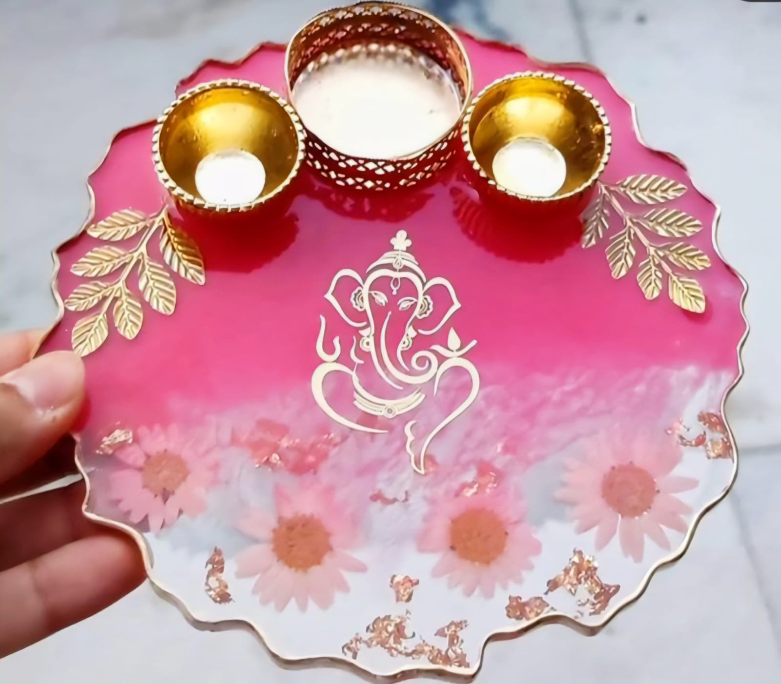 Beautiful handcrafted resin aarti thali with floral design and glossy finish. Perfect for daily pooja, festivals, and gifting purposes.